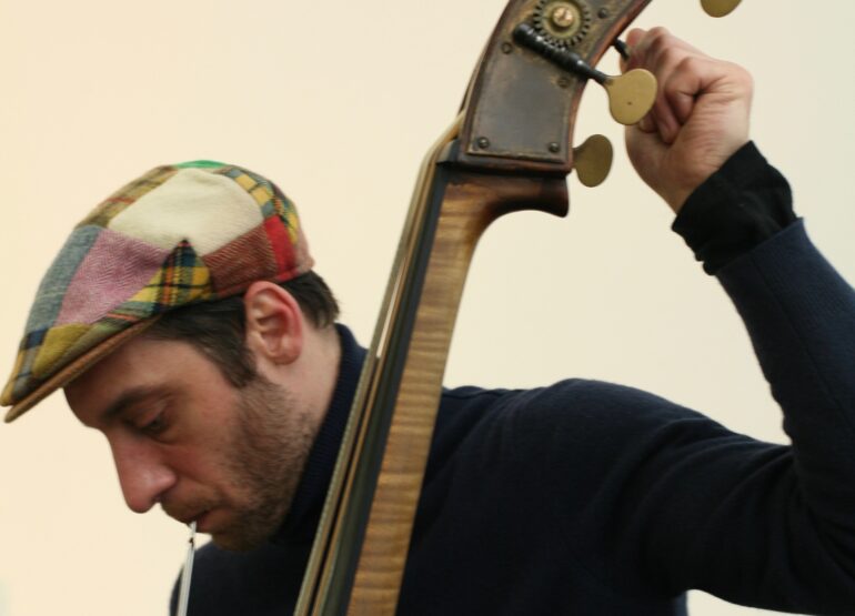Born in Milan in 1977, he grows up in Rome where, at the age of ten, begins his musical studies privately and later on at “G.B. Martini” conservatory in Bologna. Based there, he joins in the late 90’s the musicians collective “Bassesfere”, and starts collaborating with many bands (Cristina Zavalloni “Open quartet”, “Orange room”, “Headless cat”, “Mrafi”, “Chant trio” a.o.)